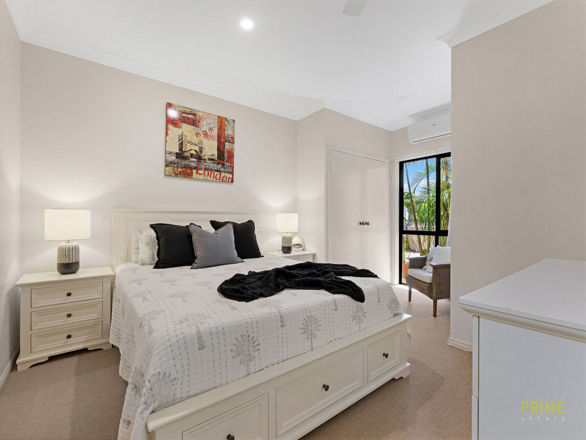 • Private master bedroom positioned at the rear of the home, surrounded by greenery and offering direct access to the alfresco area
