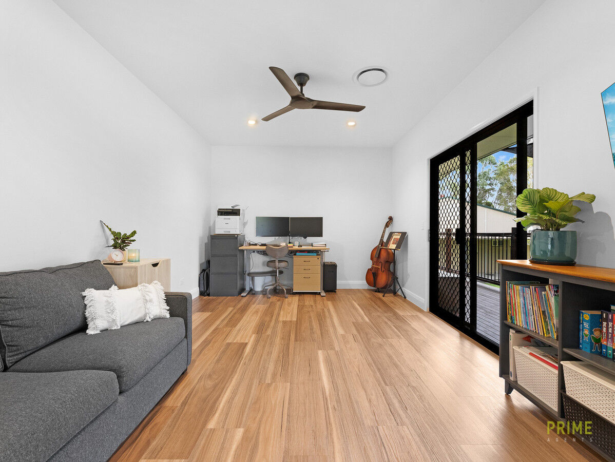 372 Honeyeater Drive Walligan is a property that effortlessly combines elegance, versatility, and country charm. With its thoughtfully designed two-wing home, luxurious master retreat, and a fully self-contained studio, it adapts perfectly to family living. Set on 5 picturesque acres, framed by lush bushland and open paddocks, the property invites a lifestyle of relaxation, privacy, and endless possibilities — where every moment, from morning coffee to evening sunsets, can be savoured in style.