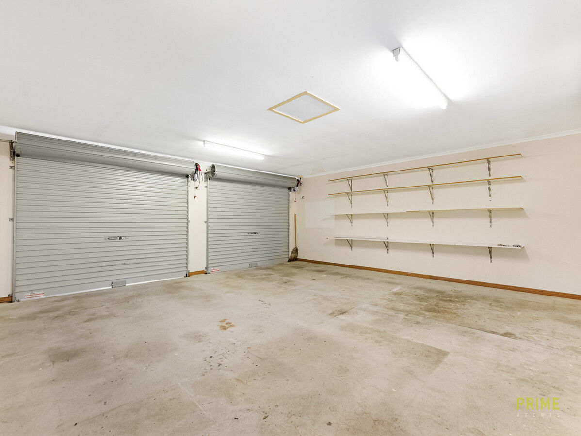 • Double bay garage with electric doors, built-in shelving and internal access